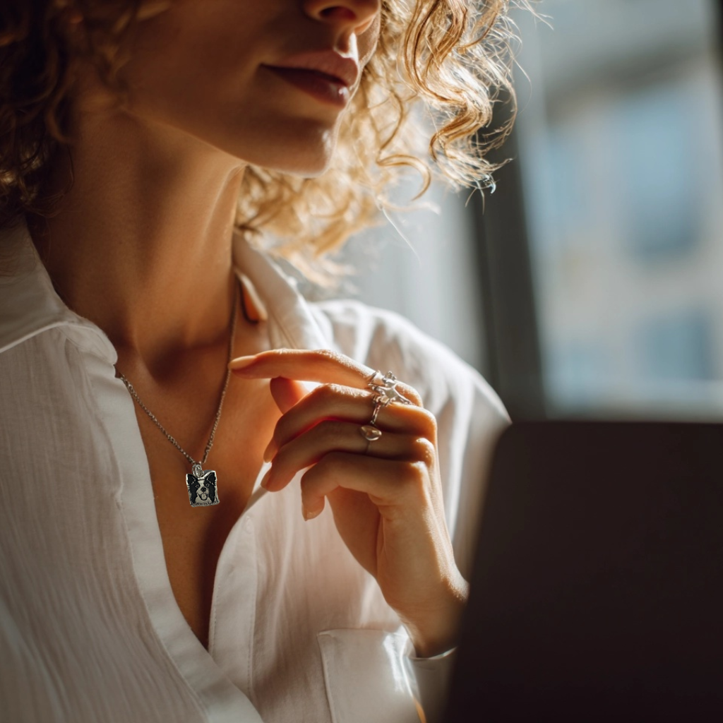 "Charlie never leaves my side, now even at the office. I touch this pendant whenever I miss his chaotic energy during long meetings. It's like a calming whisper of his presence."