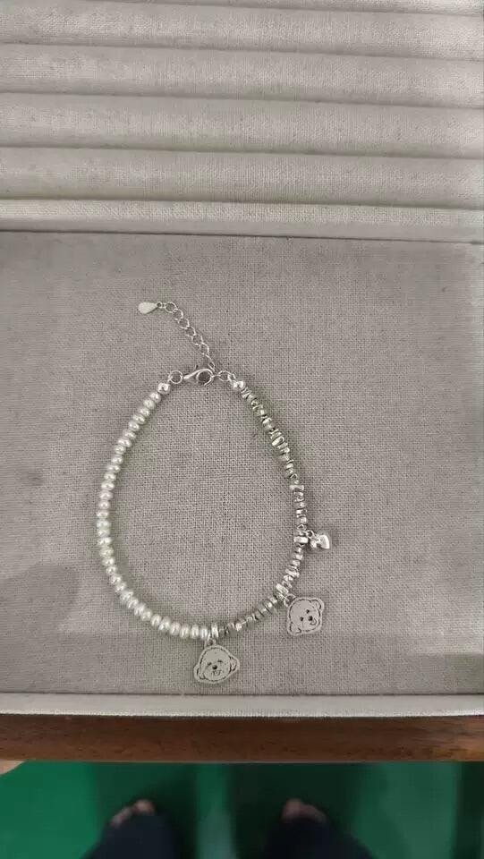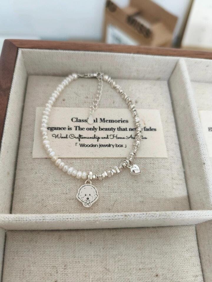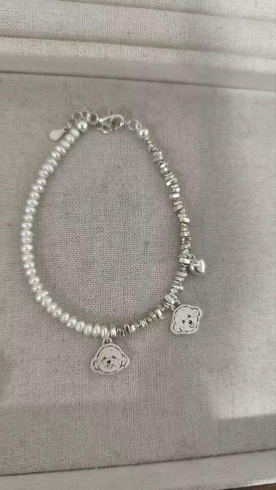 Half Crushed Silver, Half Pearl Pet Face Bracelet